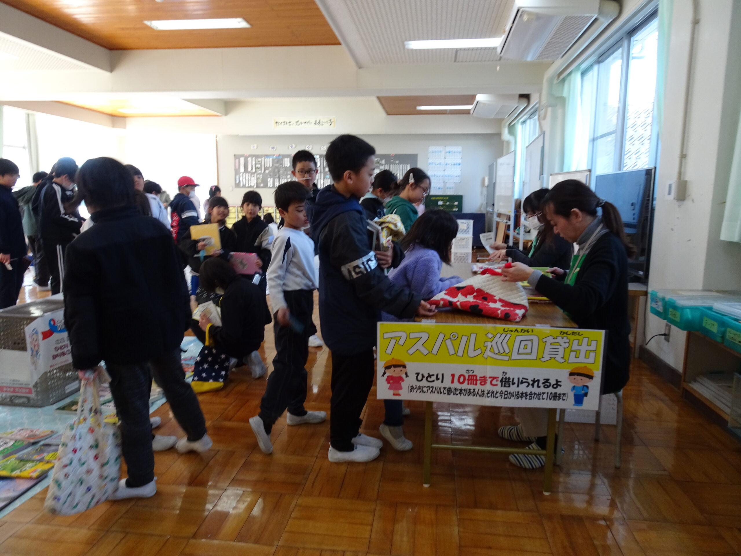 今日は、アスパルの方が北小まで来てくれて、本の貸し出しをしてくれました。