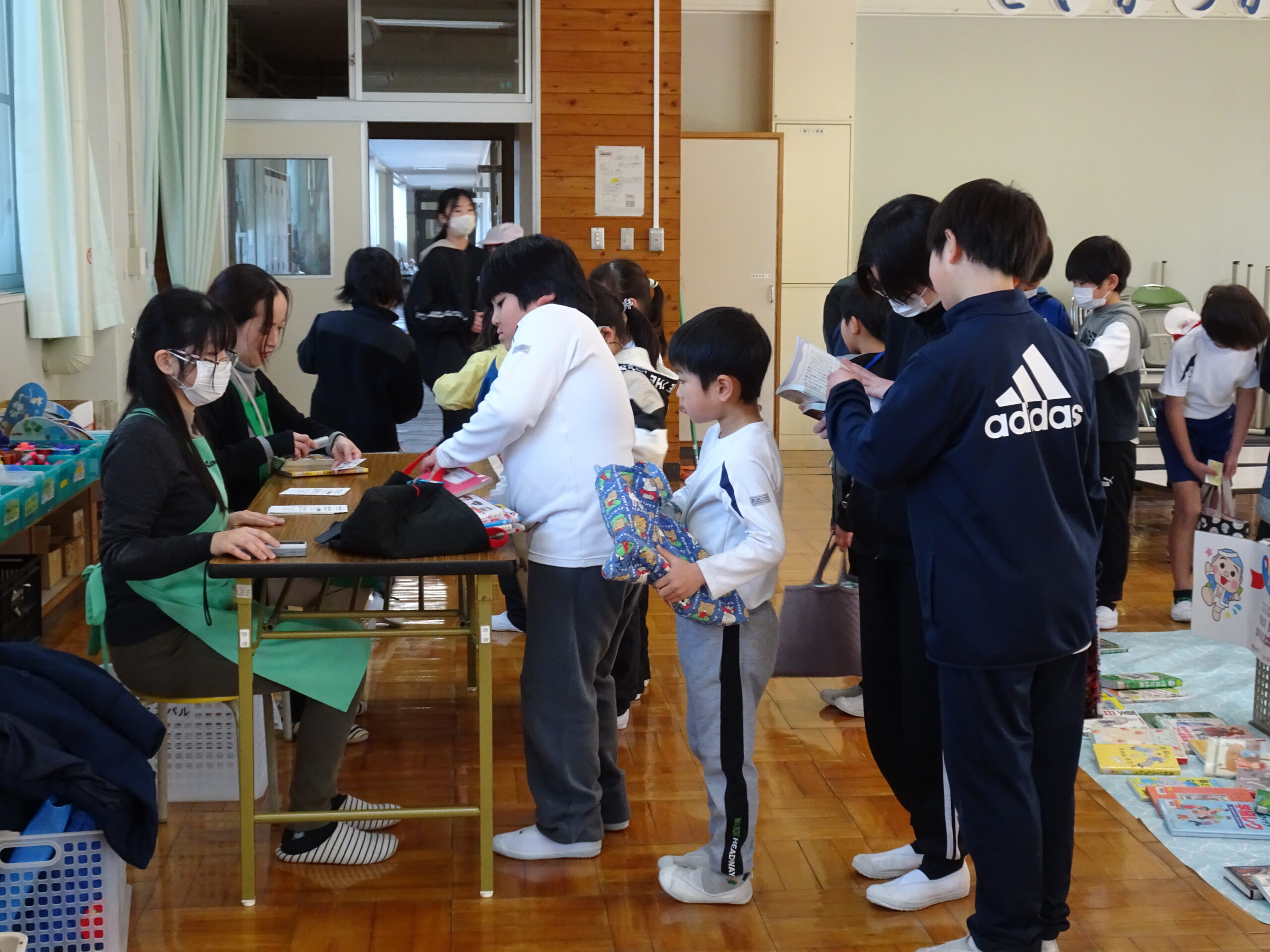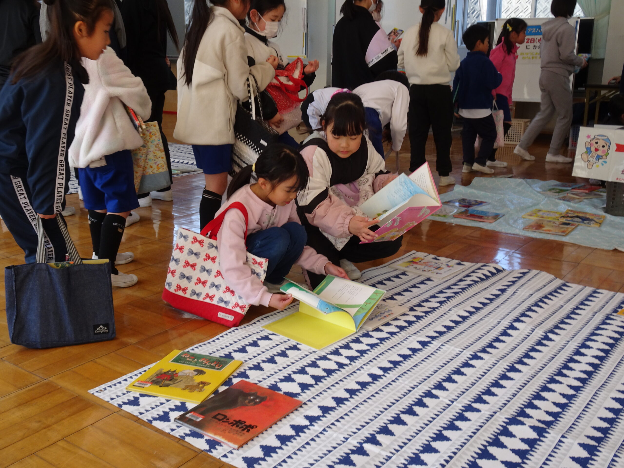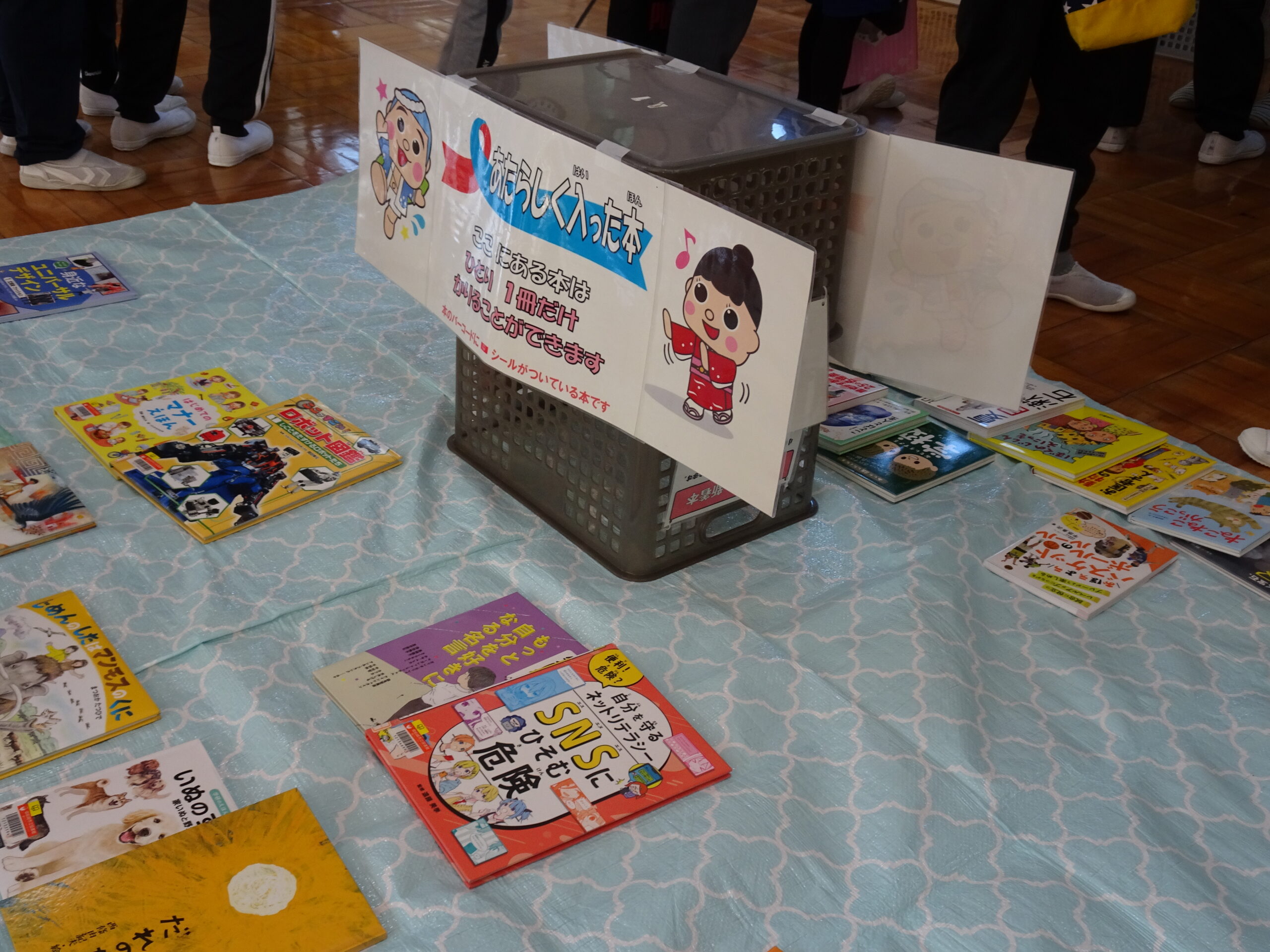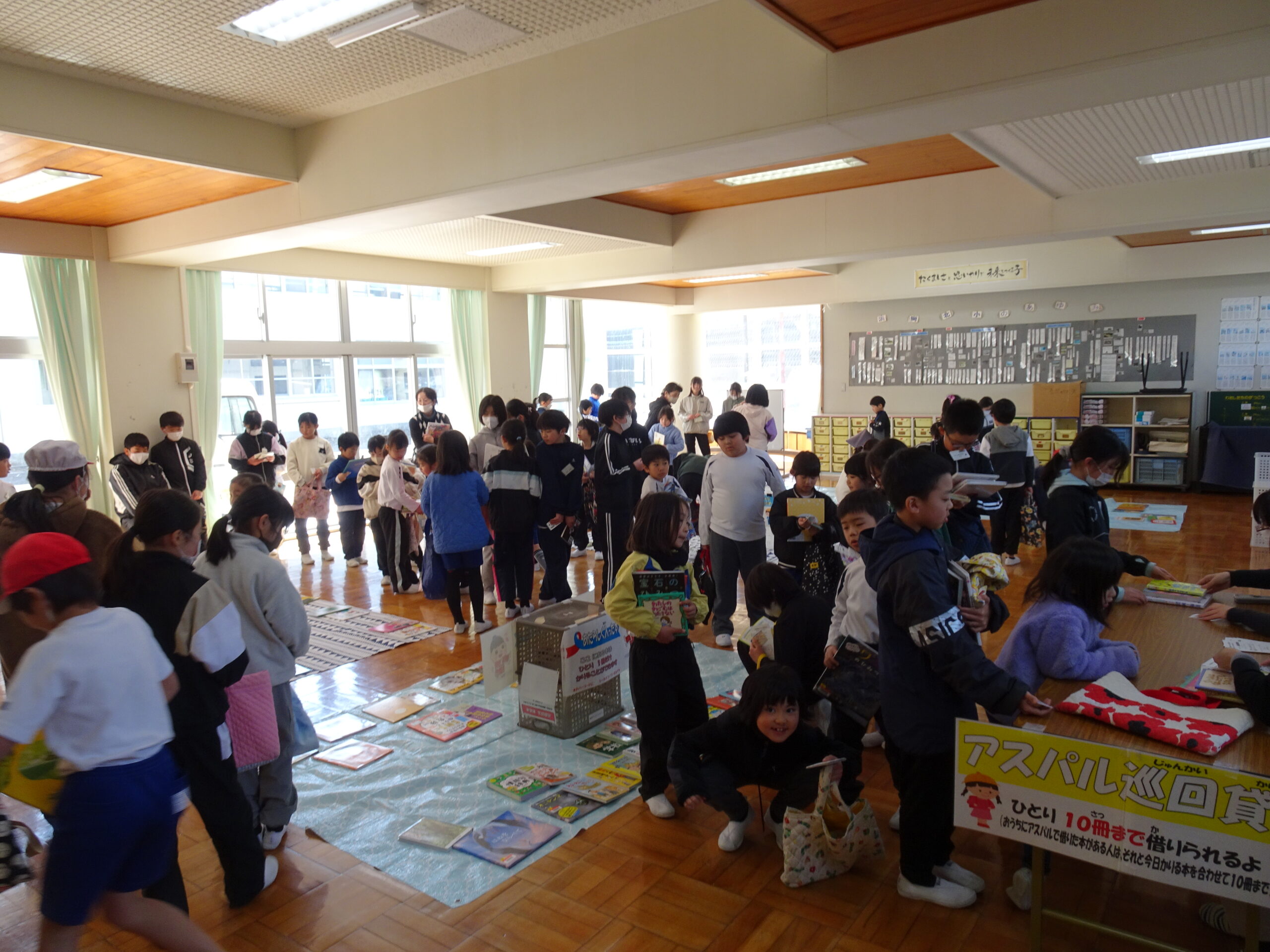この巡回貸し出しの時は、会場の北の子ホールが大盛況です。今日も給食が終わると、「おもしろそうな本あるかな」と言いながら急いでむかう子がたくさんいました。