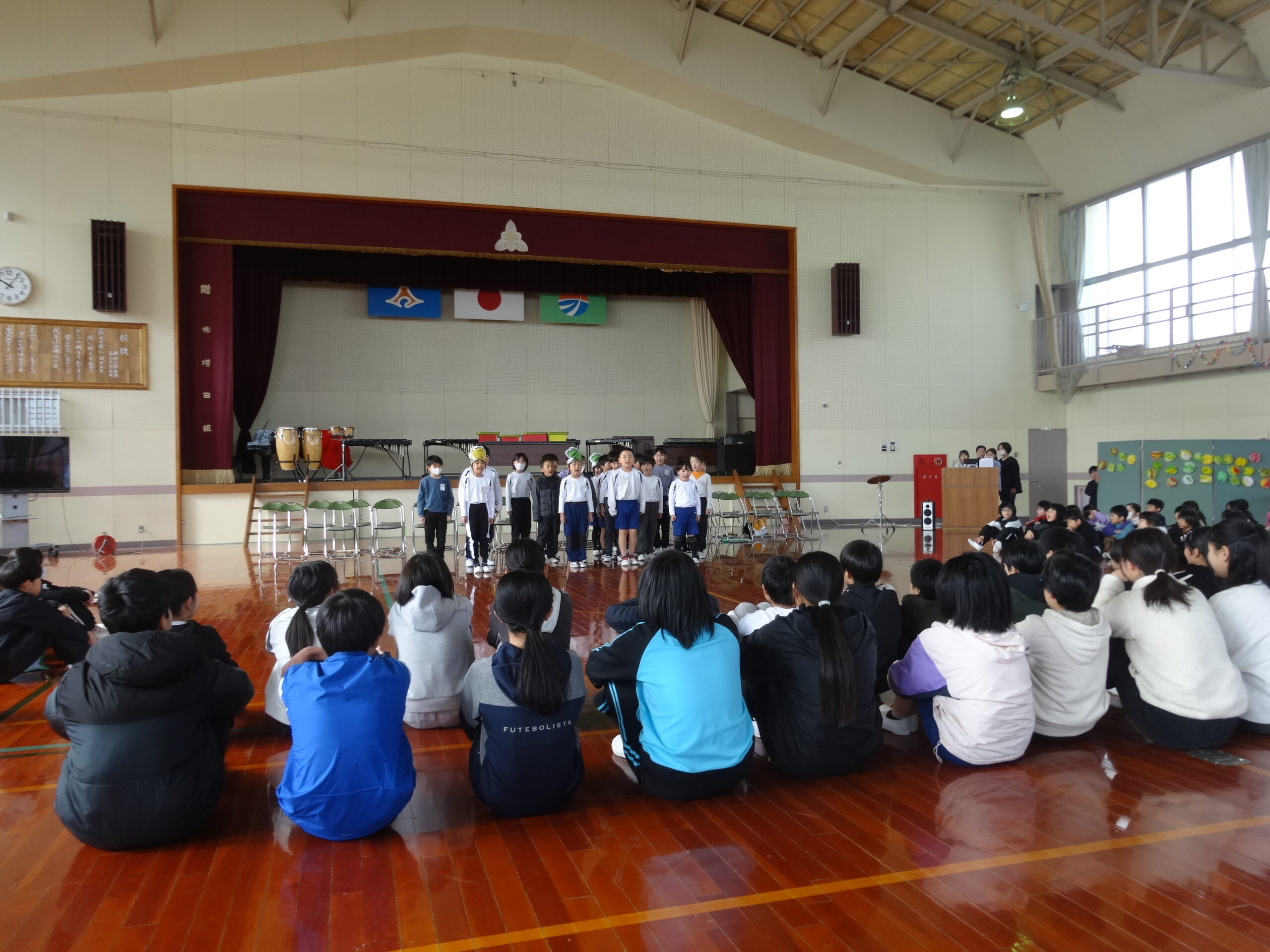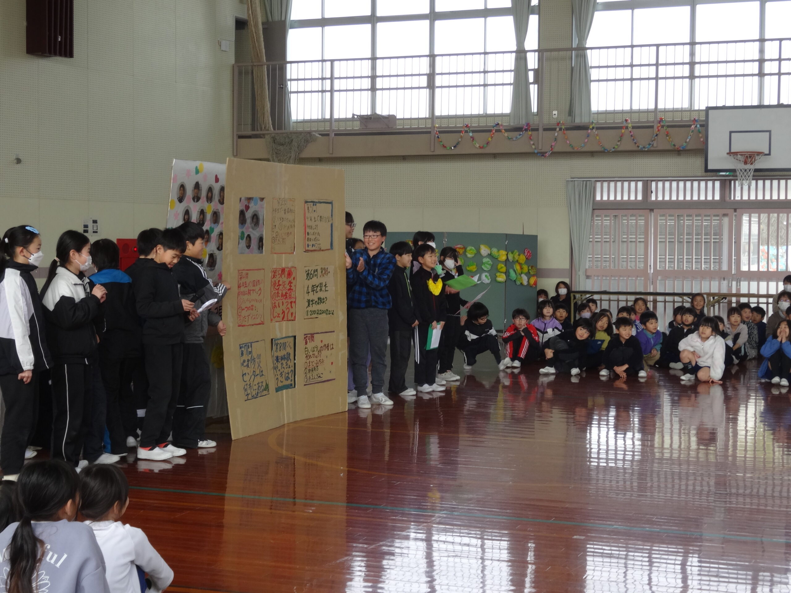 コロナ流行以降、このような会を全員が体育館に集まって実施するということはなく、6年ぶりの実施となりました。5年生はどんな会を作ればいいかと悩んだことと思いますが、みんなで協力してこのような会を作り上げ、学校全体をまとめてくれました。5年生ありがとう!