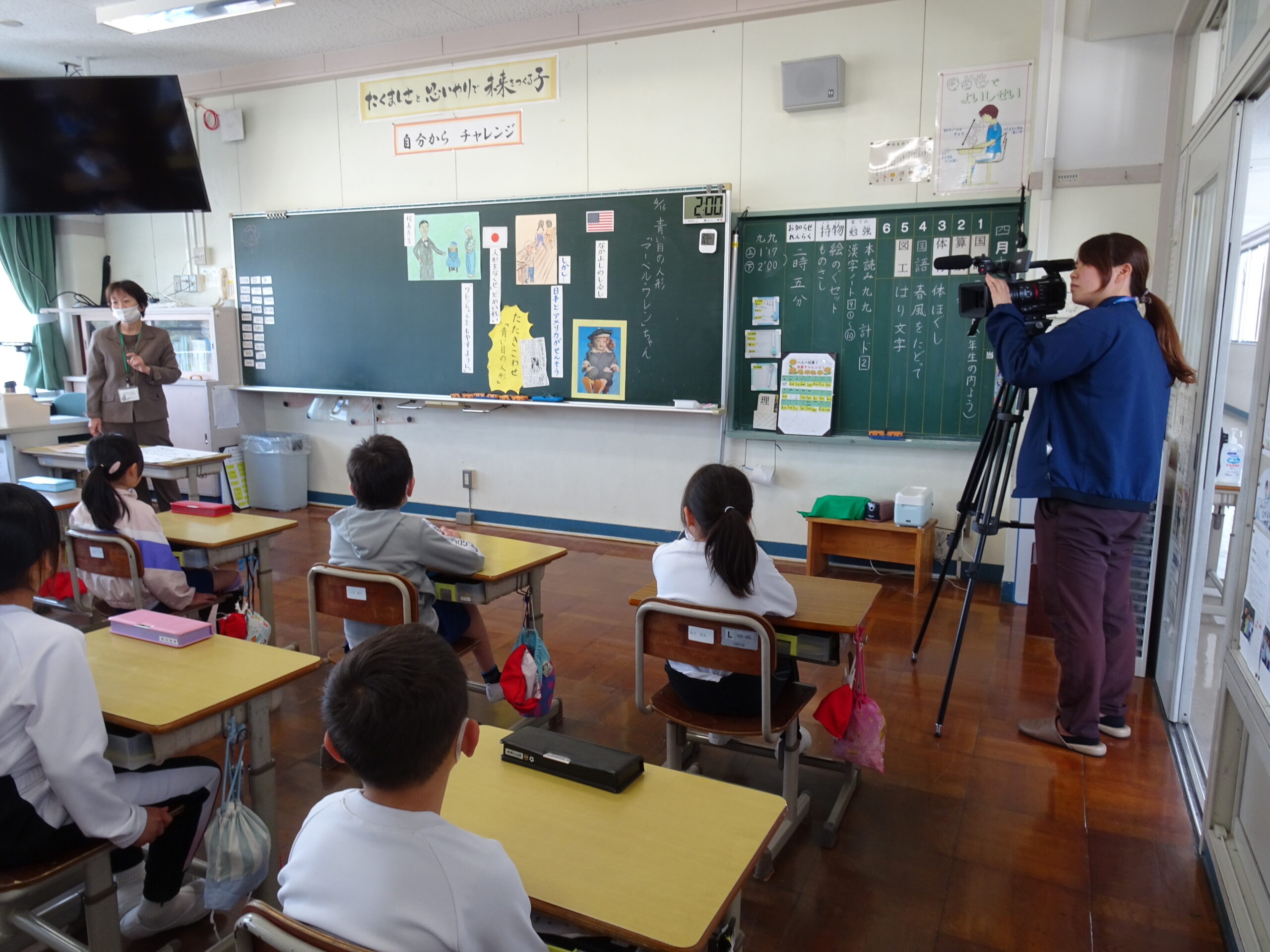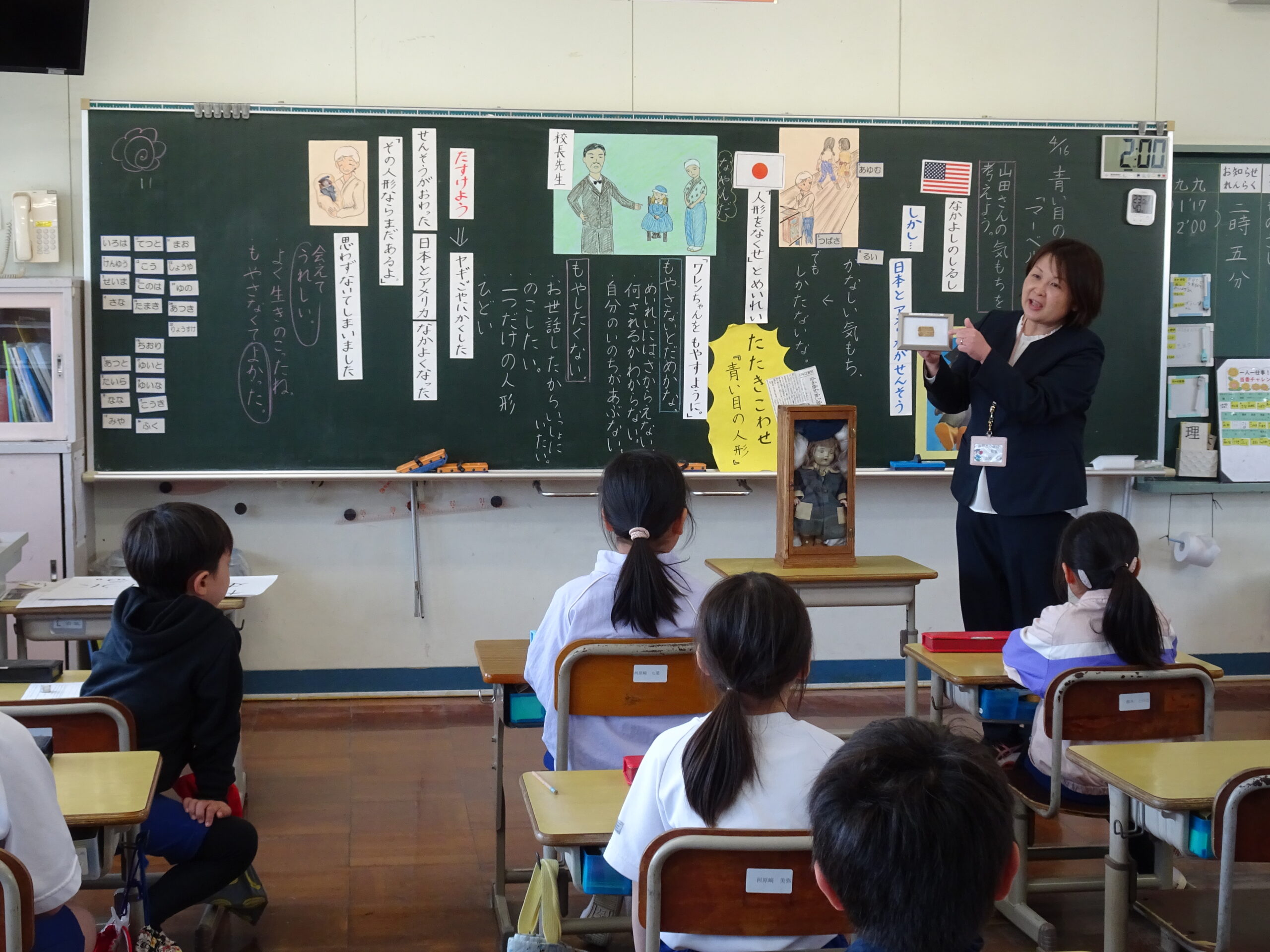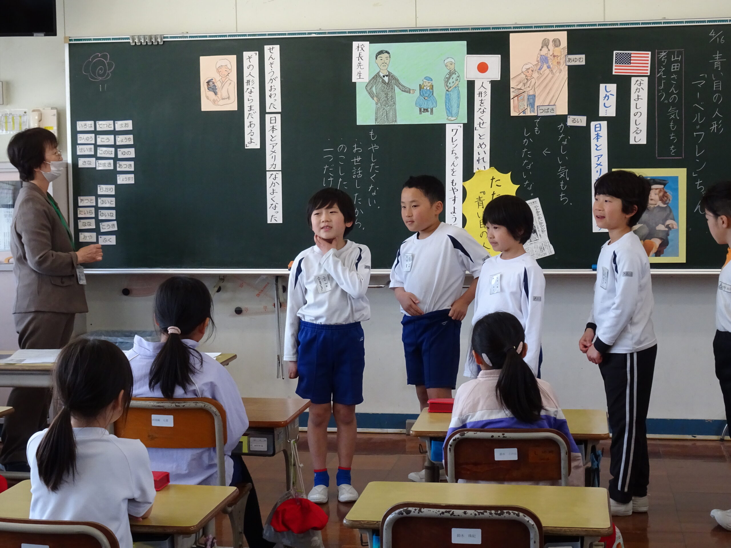 マーベルワレンの日 2025/04/16 今日は、マーベルワレンの日です。北小学校では、マーベルワレンちゃんについて3年生が学習します。 今日の授業では、ワレンちゃんが日本に来た時や戦争中の時の様子を知ることができました。 自分の感想をみんなの前で発表できていて、まおまおさんのインタビューに立候補する子もいっぱいでした。 今日感じた思いを大切にして過ごしていきましょう。 2年後は、ワレンちゃんが日本に来て、100年になります。