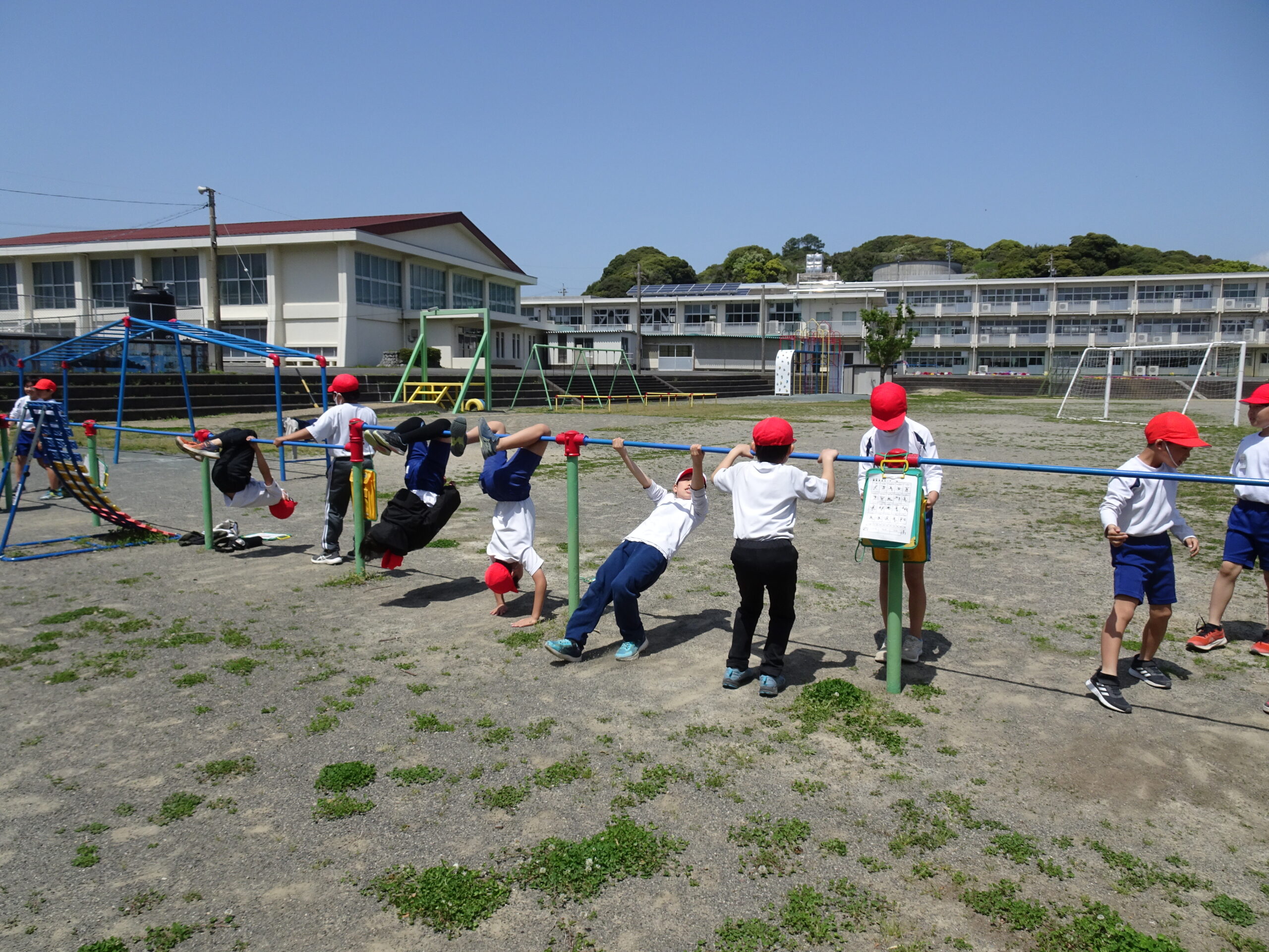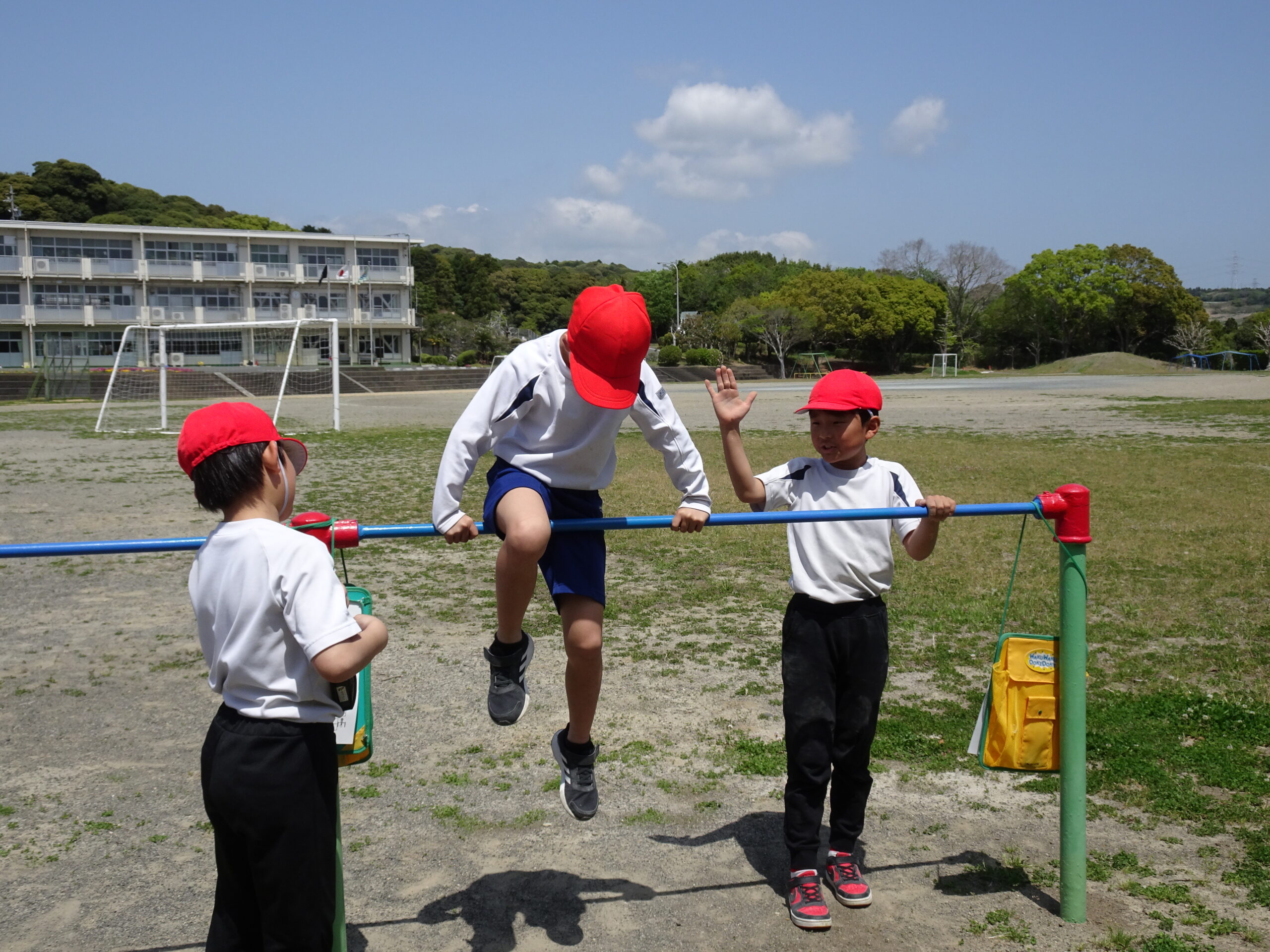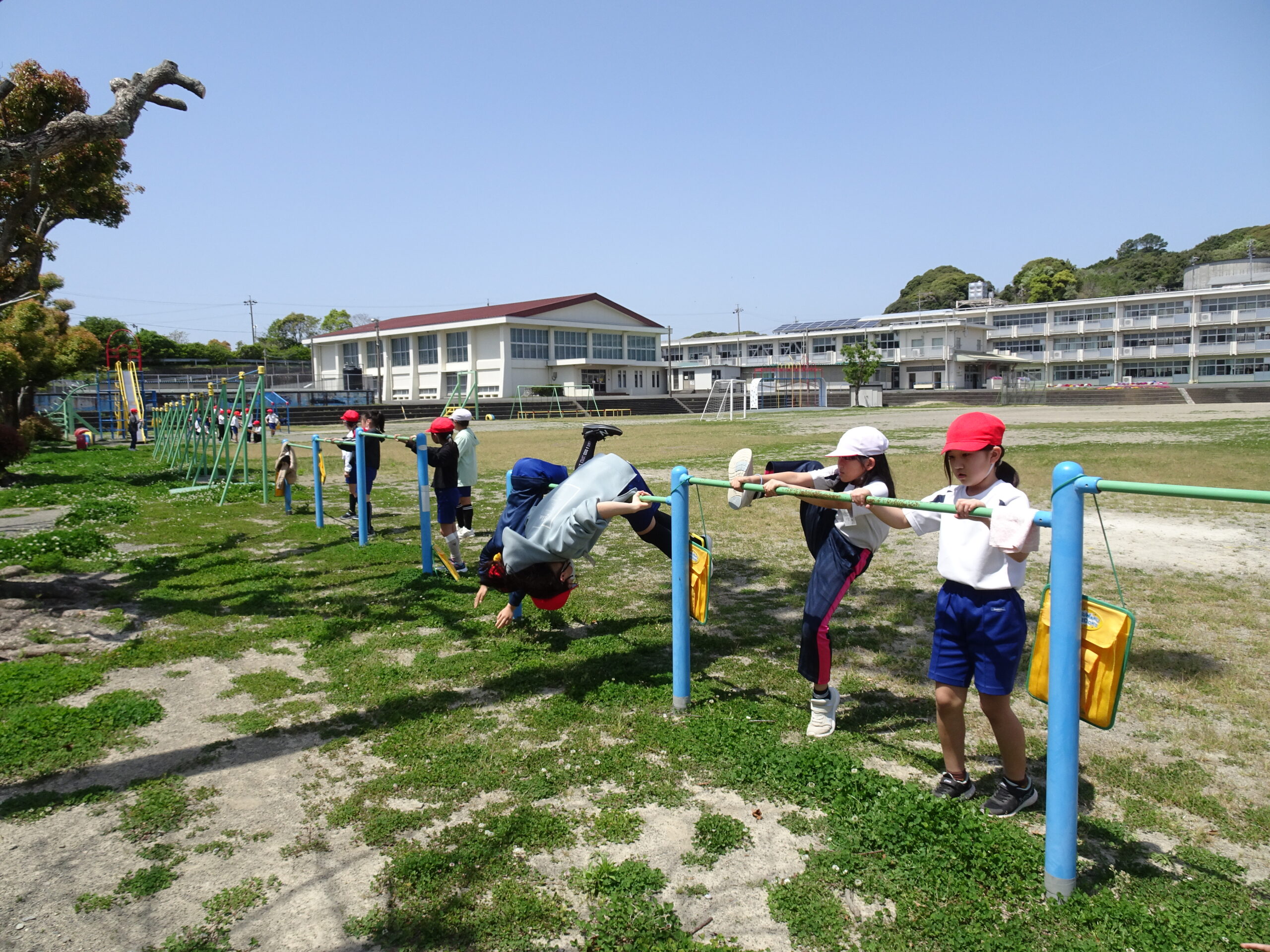 【4年生】鉄棒に挑戦 2025/04/21 4年生が、「つばめ」や「こうもり」など鉄棒の技に挑戦していました。 「ちょっとこわいし、苦手だな」という人も自分の目標を立てて、チャレンジをしていました。 苦手なことも一歩踏み出してチャレンジするところがすばらしいですね。