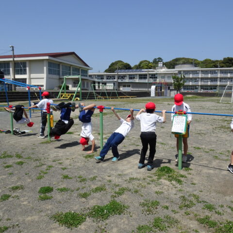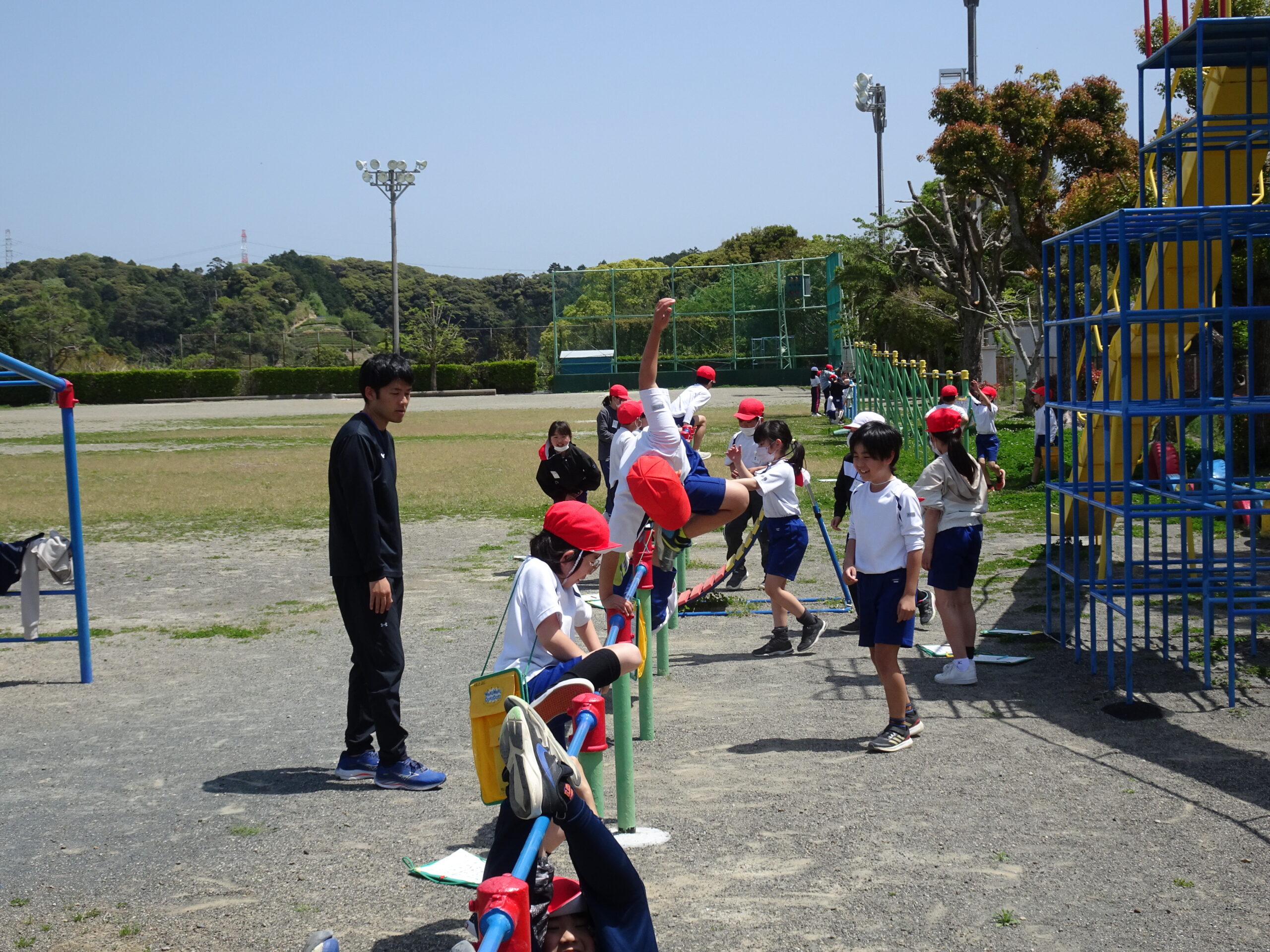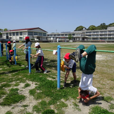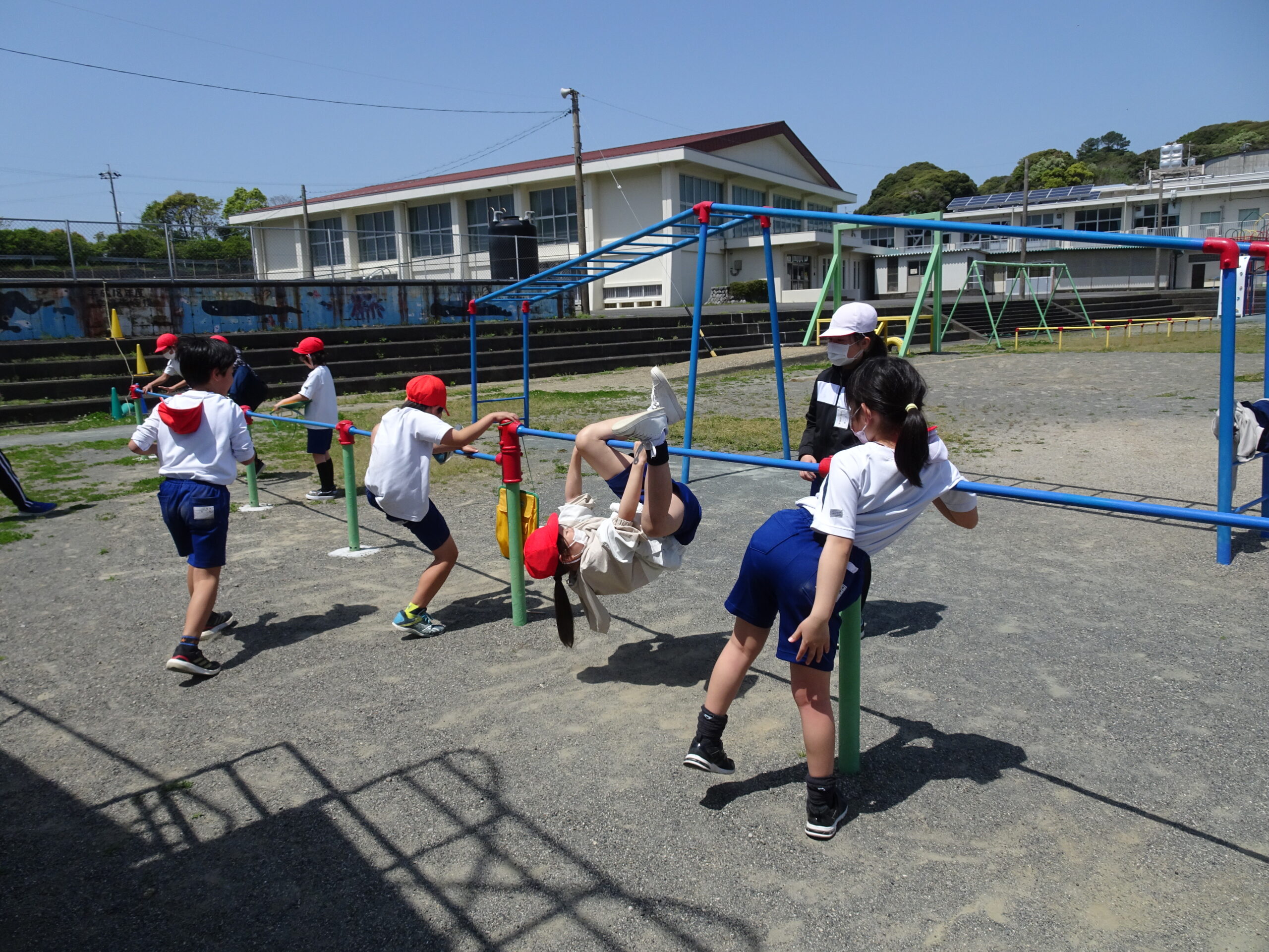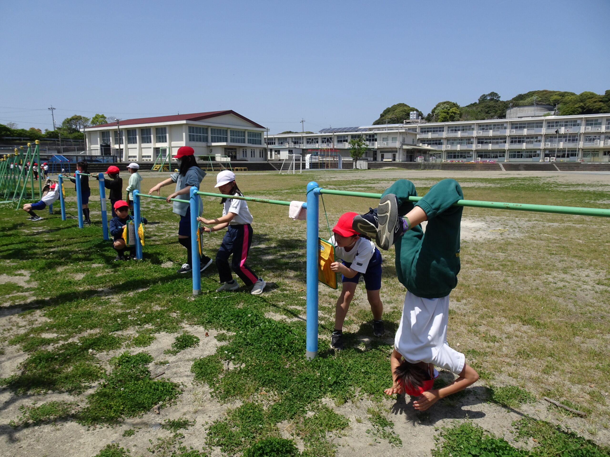 【4年生】鉄棒に挑戦 2025/04/21 4年生が、「つばめ」や「こうもり」など鉄棒の技に挑戦していました。 「ちょっとこわいし、苦手だな」という人も自分の目標を立てて、チャレンジをしていました。 苦手なことも一歩踏み出してチャレンジするところがすばらしいですね。