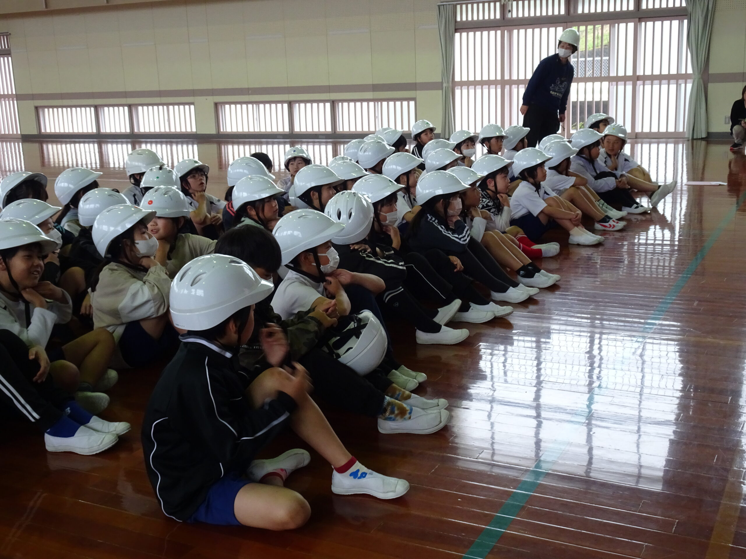 ヘルメットのひもがゆるい人が多いようなので、おうちの人と確認しましょうね。
