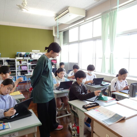クロームブックをつかいこなしています 2025/05/15 5・6年生の授業ではクロームブックをフル活用して授業をおこなっていました。 紙のプリントやノートに書いたり、クロームブックで提出したりと、その学習内容に合わせてやり方を変えています。授業の様子も大きく変化してきました。 今までのやり方と新しいやり方のそれぞれの良いところを引き出せるよう、先生たちもがんばっています。