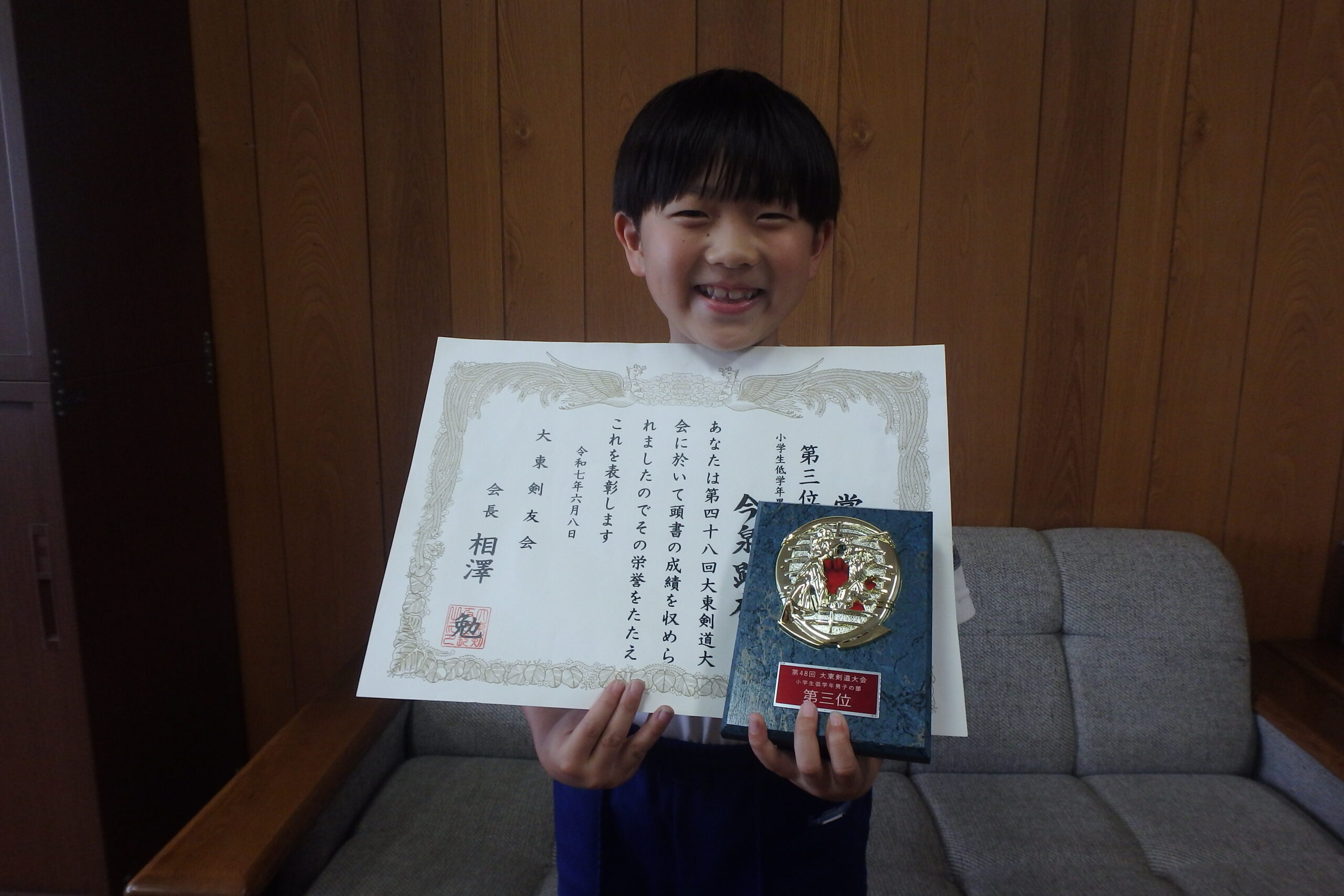 剣道がんばっています!! 2025/06/12 3年生の今泉けんゆうさんが、第48回大東剣道大会 小学生低学年男子の部で第3位になりました。 学校での勉強や運動もがんばっていますが、夜やお休みの日の剣道の稽古もいつもがんばっています。 最高の笑顔です!! これからの大会も楽しみですね。