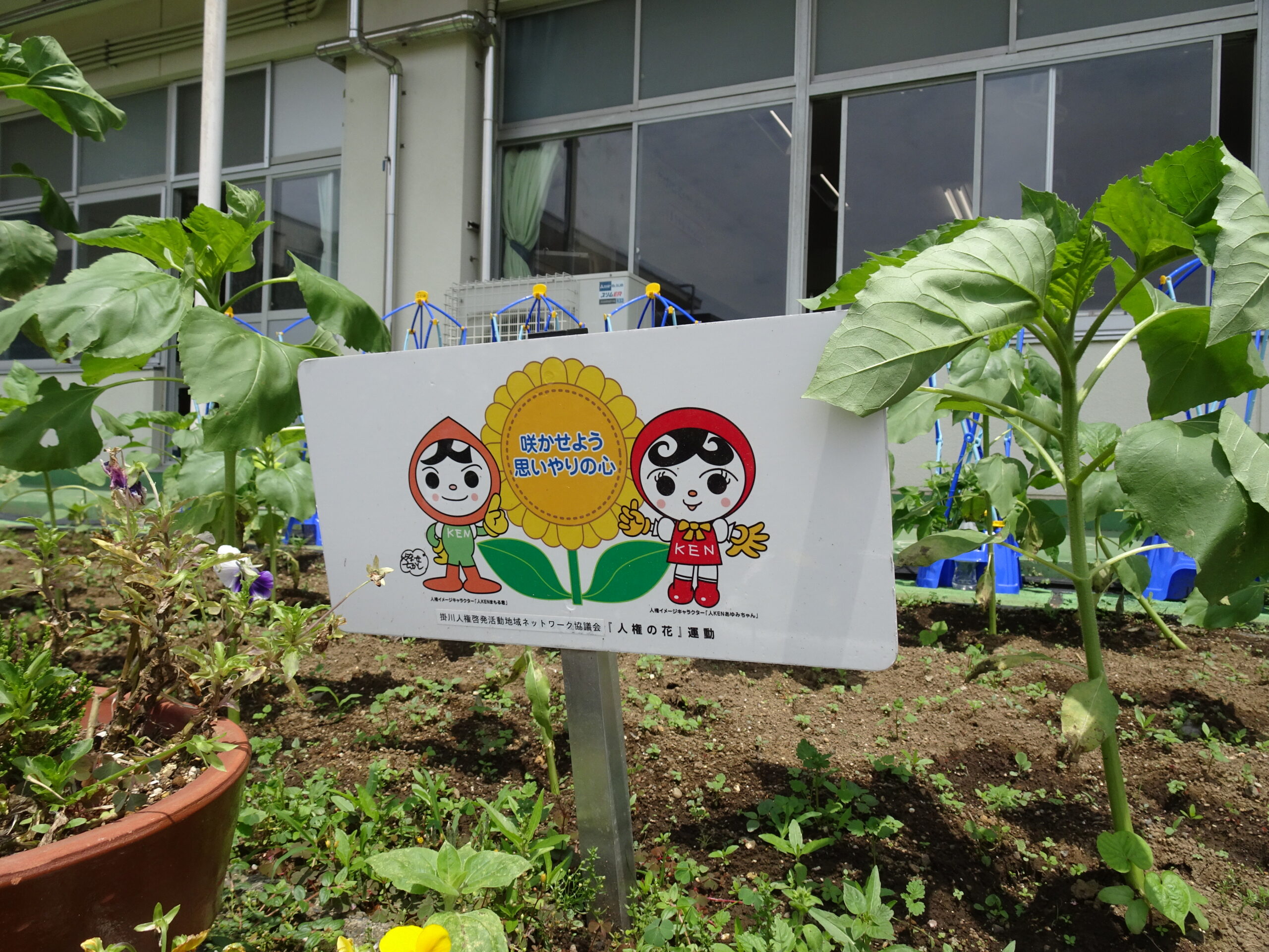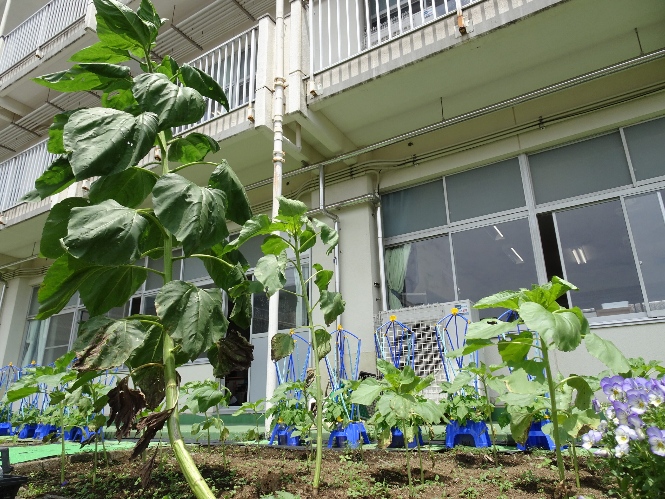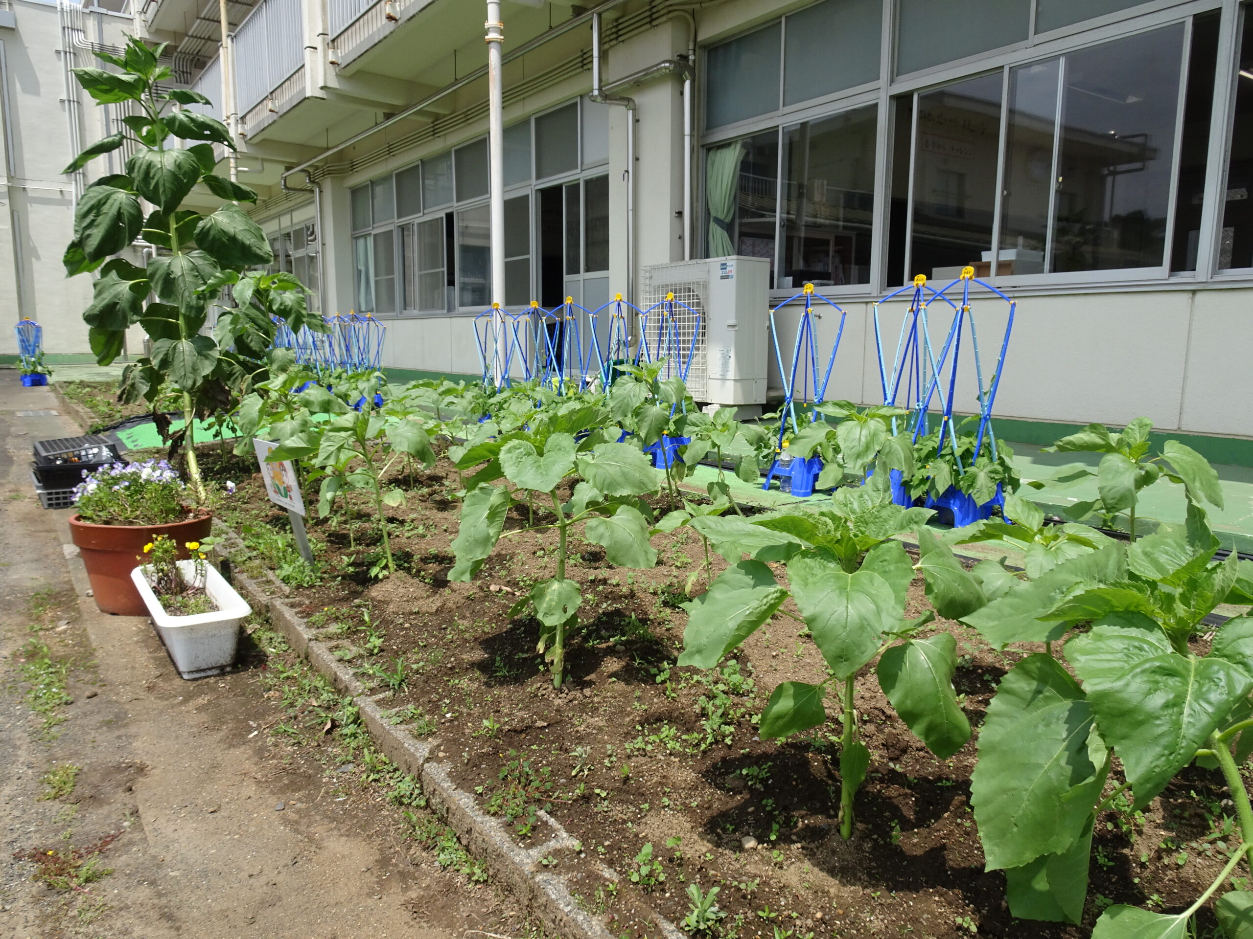 【3年生】ひまわりが、どんどん大きくなっています 2025/06/16 3年生が植えてくれた、ひまわりの背がぐんぐん伸びてきています。 その中に一つだけ、ものすごく大きなものがあります。 不思議です!! きれいな花がさくといいですね。